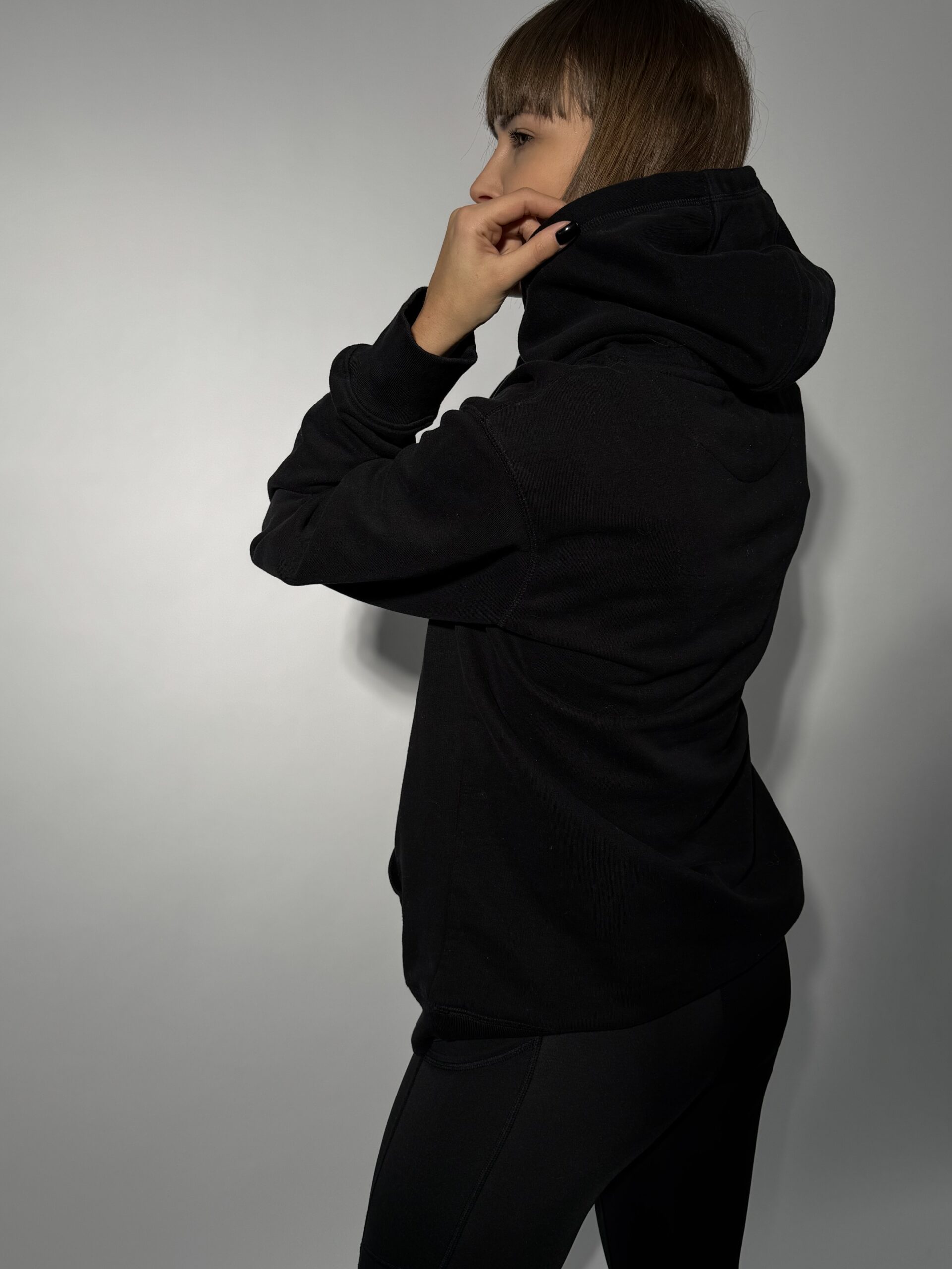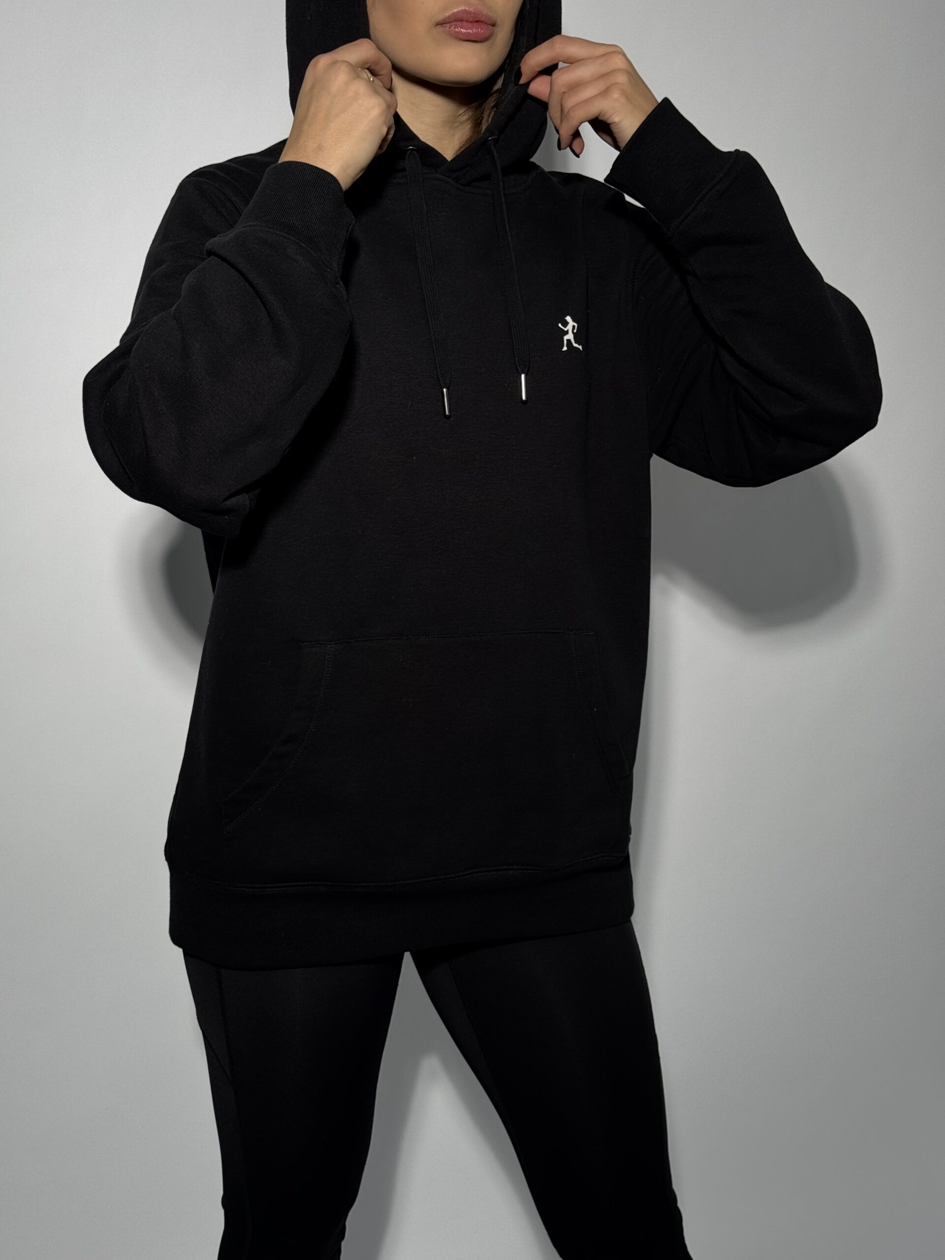 Czarna bluza z kapturem, UNISEX z przeznaczeniem do aktywności fizycznej jak i codziennych stylizacji.